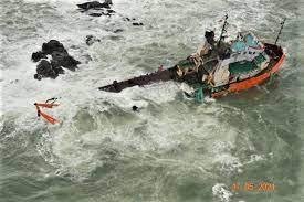 ताउते की वजह से एक जहाज समुंद्र में चट्टान से टकरा कर फंस गया