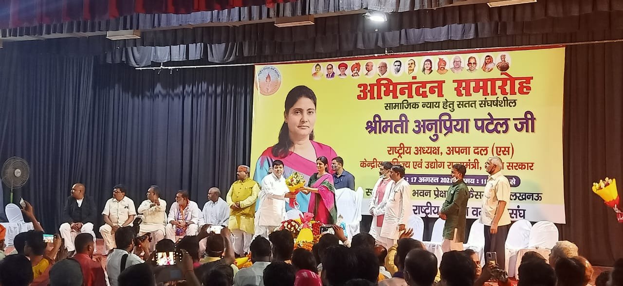 लखनऊ : दिनांक 17 अगस्त को गांधी भवन प्रेक्षागृह मे एक कार्यक्रम के दौरान अपना दल यस की राष्ट्रीय अध्यक्ष एवं केंद्रीय मंत्री अनुप्रिया पटेल के द्वारा भारतीय कुर्मी महासभा उत्तर प्रदेश के प्रदेश महासचिव एवं युवाओं के प्रेरणा स्रोत गिरजेश कुमार पटेल को पार्टी की सदस्यता दिलवाई, जिसकी घोषणा पार्टी के राष्ट्रीय कार्यकारी अध्यक्ष एवं एमएलसी आशीष पटेल के द्वारा किया गया। इसके उपरांत प्रदेश अध्यक्ष एवं लोकप्रिय विधायक सोरांव डॉ० जमुना प्रसाद सरोज जी के द्वारा पुष्पा गुच्छ भेंट कर पार्टी में स्वागत किए जहां पर पार्टी के सभी सांसद विधायक राष्ट्रीय प्रदेश के सभी प्रमुख पदाधिकारी गण एवं हजारों की संख्या में पार्टी के कार्यकर्ता उपस्थित रहे। आपको बताते चलें कि गिरजेश कुमार पटेल जनपद संत कबीर नगर (खलीलाबाद) के मूलतःरहने वाले हैं और आप कई वर्षों से सामाजिक कार्य पूरे उत्तर प्रदेश में करते आ रहे हैं युवाओं में आपके एक मजबूत पकड़ के साथ साथ में युवाओं के प्रेरणा स्रोत हैं कुर्मी महासभा को नई धार देने में आपका एक विशेष योगदान है ।