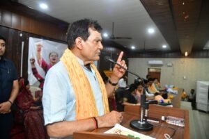 लखनऊ, 27 अप्रैल 2026: नगर विकास एवं ऊर्जा मंत्री श्री ए के शर्मा ने भदोही भ्रमण के दौरान आयोजित नारी शक्ति वंदन अधिनियम के संबंध में औराई ब्लॉक सभागार में प्रेस वार्ता की।