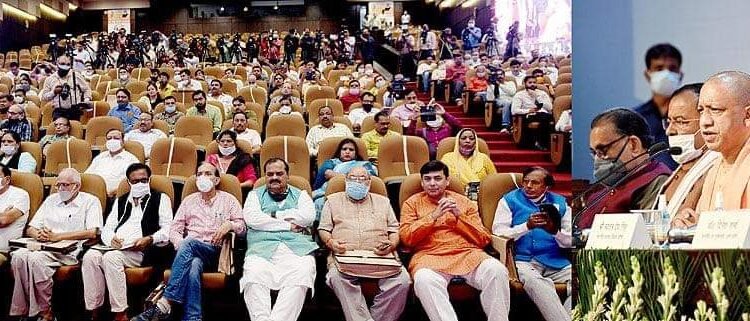 लखनऊ : लोकभवन में योगी सरकार के साढ़े 4 साल पूर्ण होने के उपलक्ष्य में आओ मनाए विकास उत्सव आयोजन।उत्तर प्रदेश के मुख्यमंत्री योगी आदित्य नाथ ने प्रेस कॉन्फ्रेंस की उनके साथ उप मुख्यमंत्री केशव प्रसाद मौर्या ,उप मुख्यमंत्री डॉ० दिनेश शर्मा,भाजपा प्रदेश अध्यक्ष स्वतंत्र देव सिंह, प्रदेश प्रभारी राधामोहन सिंह,मुख्यसचिव आर के तिवारी,अपर मुख्य सचिव ग्रह अवनीश अवस्थी ,अपर मुख्य सचिव सुचना नवनीत सहगल ,डीजीपी मुकुल गोयल मौजूद रहे। सीएम ने साढ़े 4 साल पूर्ण होने पर पुस्तक का विमोचन किया। मुख्यमंत्री योगी आदित्यनाथ ने कहा कि बीते साढ़े चार वर्ष तक उत्तर प्रदेश दंगा से मुक्त रहा। इतने लम्बे समय तक प्रदेश में कहीं दंगा नही हुआ। हमने तो बड़े तथा शातिर अपराधियों की संपत्तियां जब्त कीं। निर्दोष लोगों की संपत्ति और सरकारी संपत्ति पर अवैध कब्जा करने वालों का एक ही उपचार है बुलडोजर,वही महिलाओं की सुरक्षा के लिए एंटी रोमियो स्क्वायड का गठन किया। अब तक 11,864 इनामी और 44,759 गैंगस्टर गिरफ्तार हुए। मुठभेड़ में 150 मारे गए 3427 घायल हुए और 630 रासुका में निरुद्ध हुए।