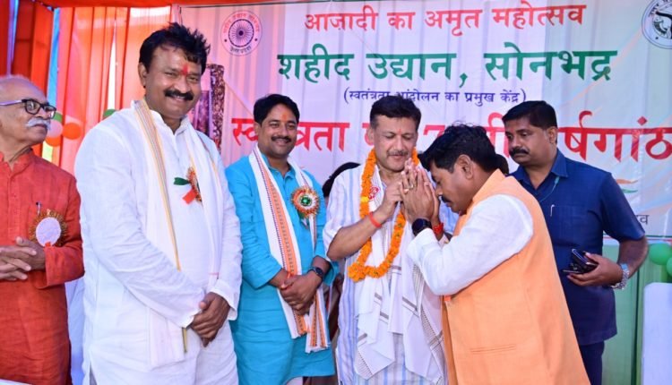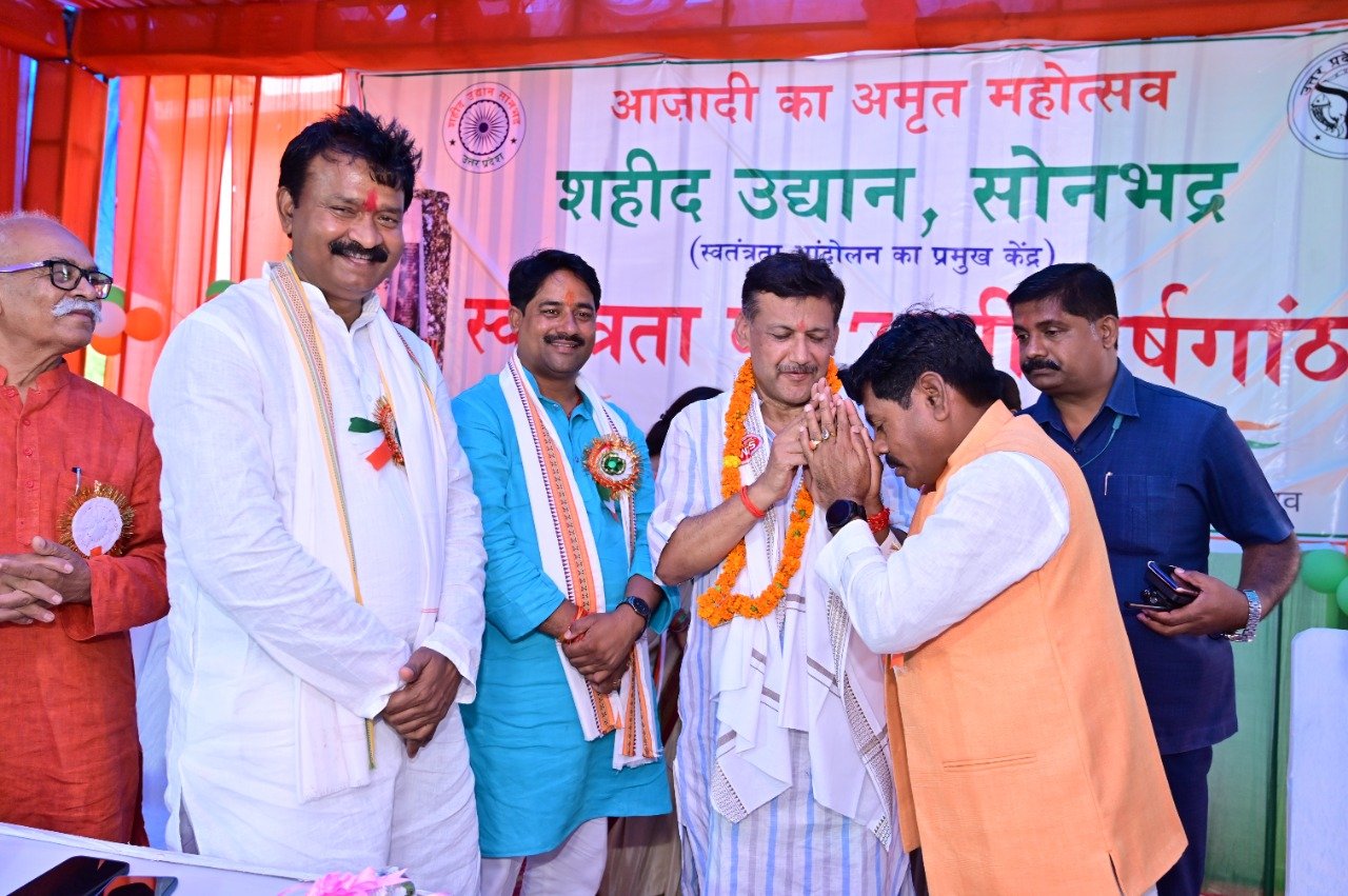 सोनभद्र/ब्यूरो स्वतंत्रता दिवस के अवसर पर जिले के स्वतंत्रता संग्राम सेनानियों के परिजनों को सम्मानित किया गया । मुख्य अतिथि राज्यमंत्री संजीव कुमार गोंड ने कहा कि वे अपने को सौभाग्यशाली समझते हैं कि उन सेनानियों के परिजनों को सम्मानित करने का अवसर मिला जिनके त्याग और बलिदान की वजह से हमें आज़ादी मिली। विधायक डॉ अनिल कुमार मौर्य ने कहा कि यह सिर्फ सेनानी परिजनों का सम्मान नहीं सोनभद्र के उन वीर सपूतों का अभिनंदन है जिन्होंने सर्वस्व त्याग कर देशसेवा को ही अपना धर्म समझा । डीएम चन्द्र विजय सिंह ने सभी सेनानी परिजनों को शुभकामनाएं दीं ।