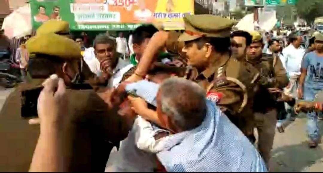 फतेहपुर : नगर फतेहपुर मैं कई दिनों से धान तौल व खाद की किल्लत के चलते भारतीय किसान यूनियन (भानु) गुट व अम्बावत गुट के तहसील अध्यक्षो ने अपने तमाम किसान साथियों के साथ ने भूख हड़ताल करते हुए किसानों की मांग ना पूरी होने पर आत्मदाह का प्रयास किया, मौके पर मौजूद पुलिस ने कड़ी मशक्कत के बीच आत्मदाह कर रहे किसानों को बड़ी सूझबूझ के साथ बचाया। मालूम हो तहसील फतेहपुर स्थित पटेल प्रतिमा पर भारतीय किसान यूनियन अध्यक्ष दद्दन सिंह की अगुवाई में बीते शुक्रवार सुबह से ही सैकड़ों किसान कार्यकर्ताओं के साथ भाकियू (भानु) गुट के तहसील अध्यक्ष दद्दन सिंह व (अम्बावत) गुट के राम नरेश पटेल ने भूख हड़ताल करते हुए आत्मदाह का ऐलान किया था। जिसको लेकर पुलिस प्रशासन के हाथ पांव फूल गए। मौके पर पहुंचे क्षेत्राधिकारी योगेश कुमार व थाना प्रभारी संजय मौर्य ने किसानों से भूख हड़ताल खत्म करने का अथक प्रयास किया। गौरतलब है मौखिक निस्तारण पर किसानों ने असंतुष्टता जताते हुए पुलिस की मौजूदगी में भाकियू के तहसील अध्यक्ष दद्दन सिंह सहित कई किसानों ने अपने ऊपर पेट्रोल डालकर आत्मदाह करने का प्रयास किया। मौके पर मौजूद थाना प्रभारी व पुलिस टीम ने कड़ी मशक्कत के चलते आत्मदाह कर रहे किसानों को बचाया।