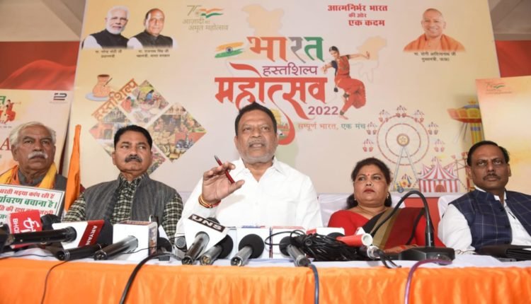 उन्होंने बताया कि भारत हस्तशिल्प महोत्सव- 2022 की थीम ‘आत्म निर्भर भारत की ओर बढ़ते कदम’ है। विनोद कुमार सिंह ने बताया कि भारत हस्तशिल्प महोत्सव मे 28 राज्यों उत्तर प्रदेश, बिहार, राजस्थान, महाराष्ट्र, उत्तराखण्ड, पंजाब, ओडिशा, मध्य प्रदेश, गुजरात, झारखंड, जम्मू-कश्मीर, हिमांचल प्रदेश, हरियाणा, गोवा, छत्तीसगढ़, आंध्रप्रदेश, असम, मेघालय, मणिपुर, तमिलनाडु एवं 8 केन्द्र शासित प्रदेशों अण्डमान- निकोबार, दादर नगर हवेली, दमन और दीव, लक्ष्यद्वीप, चंडीगढ़, दिल्ली और पांडिचेरी की कला संस्कृति, पर्यटन, हस्त शिल्प, देशी उत्पाद, वस्त्र, फर्नीचर, मसाले, हैण्डलूम-हैण्डी क्राफ्ट, आटोमोबाइल, बैंकिंग, पर्यटन विभाग उ.प्र. और नाबार्ड सहित अन्य क्षेत्रों के स्टाल आकर्षण का केन्द्र होंगे।