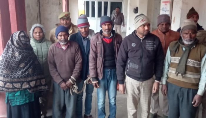 इकबाल उर्फ राजू पुत्र इश्लाम निवासी ग्राम सराय अगहत, थाना नयागांव जिला एटा,धनपाल पुत्र हरदयाल निवासी हरेंडी थाना उसहैत जिला बदायॅूं,गुड्डू पुत्र सूरजपाल निवासी भकरौली थाना उसहैत जिला बदायॅूं,हरि सिंह पुत्र रामस्वरूप निवासी नई बस्ती भौती कीलापुर थाना मिर्जापुर जिला शाहजहॉंपुर,नत्थूलाल पुत्र झंडुलाल निवासी कालिया काजिमपुर थाना कॅुंवरगांव जिला बदायॅूं,चांदनी उर्फ पूजा पत्नी इकबाल उर्फ राजू निवासी सराय अगहत थाना नयागांव जिला एटा है।