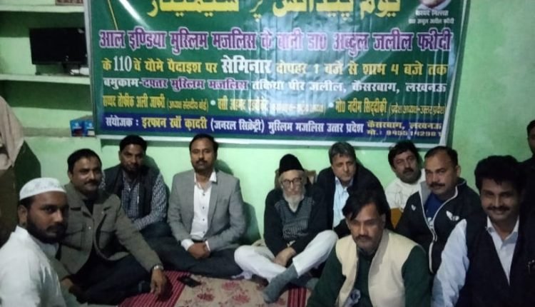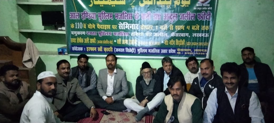 लखनऊ। बानी ऑल इंडिया मुस्लिम मजलिस काइदे मिल्लत डाक्टर अबदुल जलील फरीदी साहिब के यौम पैदाईश के मौके पर दफ्तर मुस्लिम मजलिस तकिया पैर जलील कैसरबाग लखनऊ में पार्टी के कौमी कारगुजार सदर वसी अहमद ऐडवोकेट की सदारत में एक सेमिनार का इनइक़ाद किया गया। सेमिनार में फरीदी साहिब की मिल्ली ,तिब्बी और सियासी खिदमात पर रोशनी डालते हुए शुरका इजलास ने कहा कि फरीदी साहिब एक मशहूर डाक्टर होने के साथ ही कद्दावर मिली-व-सियासी लीडर थे।