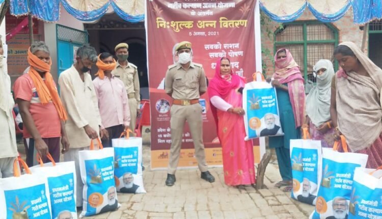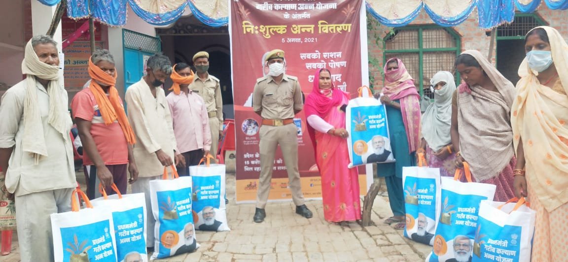 फतेहपुर : प्रधानमंत्री खाद्यान्न वितरण योजना के तहत पूर्व निर्धारित कार्यक्रम के तहत आज बकेवर जगदीशपुर में सरकारी राशन की दुकानों पर अन्न महोत्सव का आयोजन कर निशुल्क खाद्यान्न वितरण विकास खंड देवमई के एडीओ आर ई एस ,ग्राम प्रधान प्रहलाद सिंह जगदीशपुर ,जय राम पासवान ग्राम प्रधान बकेवर बुजुर्ग व पुलिस की मौजूदगी में सम्पन्न हुआ।इस दौरान 22-22 पात्र लाभार्थियों को निःशुल्क खाद्यान्न व झोला वितरित कर खाद्यान्न वितरण किया गया। राशन दुकानदारों ने बताया कि उन्हें मात्र 22-22 झोले ही विभाग द्वारा उपलब्ध कराए गए हैं।जिनका वितरण किया गया है। खाद्यान्न वितरण इस मौके पर अनेक गणमान्य लोग भी मौजूद रहे।