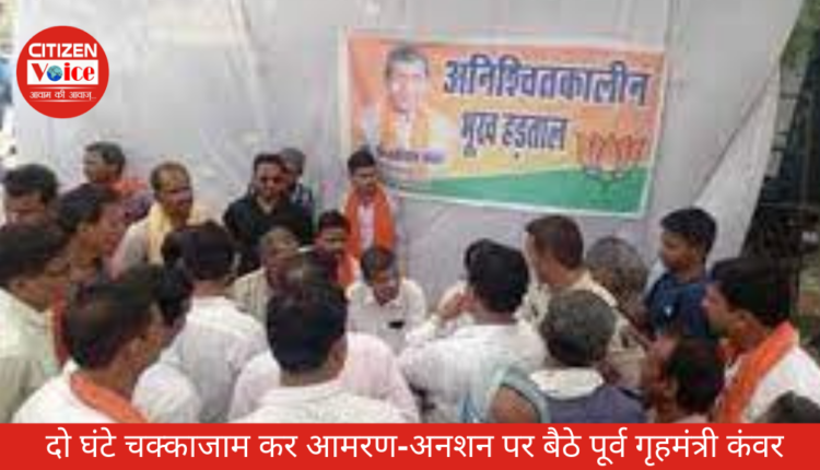 दो घंटे चक्काजाम कर आमरण-अनशन पर बैठे पूर्व गृहमंत्री कंवर