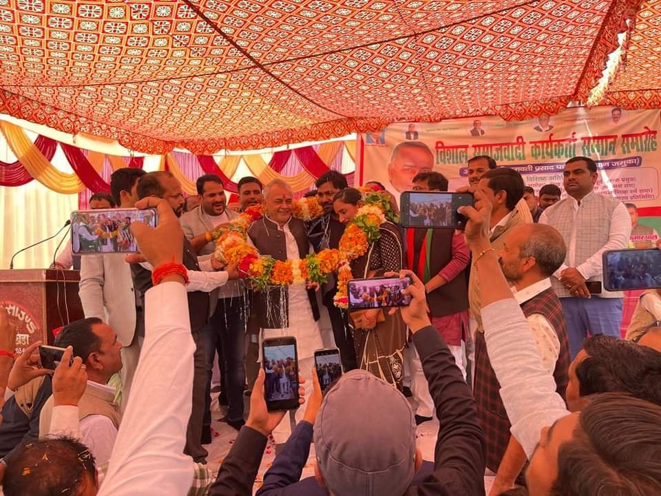 उन्होंने अपने ऊर्जावान उद्बोधन से कार्यकर्त्ताओं में उत्साह का संचार किया। उन्होंने कहा कि आज हम सभी संकल्प लेते हैं कि आगामी विधानसभा चुनावों में पार्टी को ऐतिहासिक विजय दिलाकर एक बार फिर से राष्ट्रीय अध्यक्ष अखिलेश यादव को मुख्यमंत्री बनाना है। इससे क्षेत्र व प्रदेश दोनों का विकास होगा। उन्होंने भाजपा सरकार पर तंज कसते हुए कहा कि वर्तमान सरकार केवल भाई को भाई से लड़ाकर और धार्मिक उन्माद फैलाकर चुनाव जीतना चाहती है किन्तु इस बार प्रदेश व क्षेत्र की जनता उनको मुंहतोड़ जवाब देगी। पार्टी के सभी वक्ताओं ने सूबे की योगी आदित्यनाथ की भाजपा सरकार व क्षेत्रीय जनप्रतिनिधि व करारा प्रहार किया। कार्यक्रम का आयोजन पूर्व छात्र नेता हेमंत पाल ने किया।