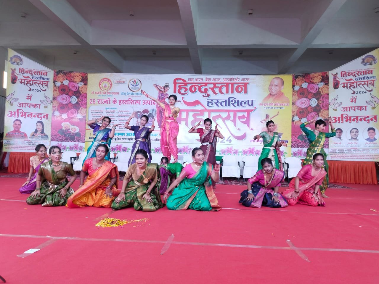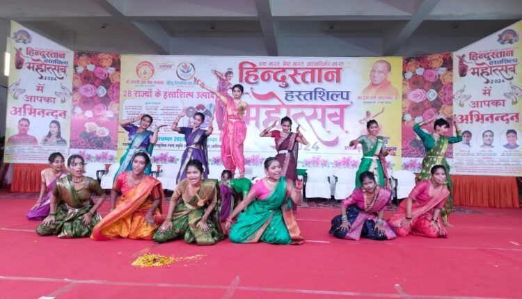लखनऊ : स्मृति उपवन बंग्ला बाजार में आयोजित माँ गायत्री जन सेवा संस्थान एवं नीशू वेलफेयर फाउंडेशन के तत्वाधान में हिंदुस्तान हस्तशिल्प महोत्सव में शुक्रवार शाम आज के बतौर मुख्य अतिथि सदस्य विधान परिषद मुकेश शर्मा एवम अध्यक्ष अरुण प्रताप सिंह व गुंजन वर्मा द्वारा सांस्कृतिक संध्या का शुभारम्भ दीप प्रज्ज्वलित कर किया गया। सांस्कृतिक संध्या की शुरूआत नेचुरल टच वेलफेयर सोसायटी द्वारा अध्यक्ष- स्मृति शर्मा महाराष्ट्र लोक-देव श्री गणेशा, बांग्ला- लोकगीत,राजस्थान- मैशअप/ कालबेलिया, गुजराती- ढोलिडा ढोल रे वागड़ से प्रस्तुती दी गई जिसमें कुल- 53 प्रतिभागी (आर्यकन्या पाठशाला इंटर स्कूल, आरबीएन ग्लोबल स्कूल) रहें