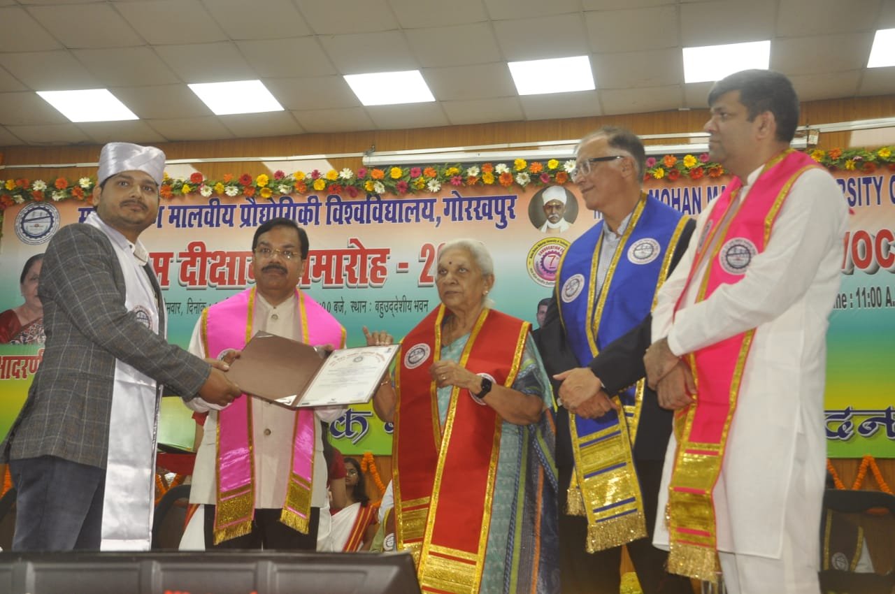 बल्कि उन्हें जीवन की सभी चुनौतियों का सामना करने के लिए सक्षम बनाना भी है। नई शिक्षा नीति का उद्देश्य सिर्फ डिग्रीधारी युवा तैयार करना नहीं, वरन् देश की जरूरतों के अनुसर मानव संसाधन तैयार करना है। राज्यपाल ने अपने सम्बोधन में विश्वविद्यालय को हाल ही में नैक मूल्यांकन में ए ग्रेड प्राप्त होने का उल्लेख करते हुए, विश्वविद्यालय स्तर को और बेहतर करते रहने के लिए प्रोत्साहित किया। उन्होंने विश्वविद्यालय को भारत सरकार के इलेक्ट्रानिक्स एवं सूचना प्रौद्योगिकी द्वारा संचालित परियोजना चिप टू स्टार्ट अप के अंतर्गत सेमीकण्डक्टर चिप डिजाइन की दिशा में कार्य करने हेतु चुने जाने पर प्रशंसा व्यक्त की।समारोह में राज्यपाल ने 1290 विद्यार्थियों को उपाधि वितरण किया, इनमें 941 छात्र एवं 339 छात्राएं हैं। पदक प्राप्त करने वालों में 790 बी0टेक0, 42 बी0बी0ए0, 194 एम0टेक0, 38 एम0एस0सी0, 68 एम0बी0ए0, 63 एम0सी0ए0 (तीन वर्ष), 68 एम0सी0ए0 (दो वर्ष) तथा 27 विद्यार्थी पी0एच0डी0 के हैं। इस दीक्षांत समारोह में विश्वविद्यालय के कुल 39 मेधावी विद्यार्थियों को स्वर्ण पदक प्राप्त करने का सौभाग्य प्राप्त हुआ।