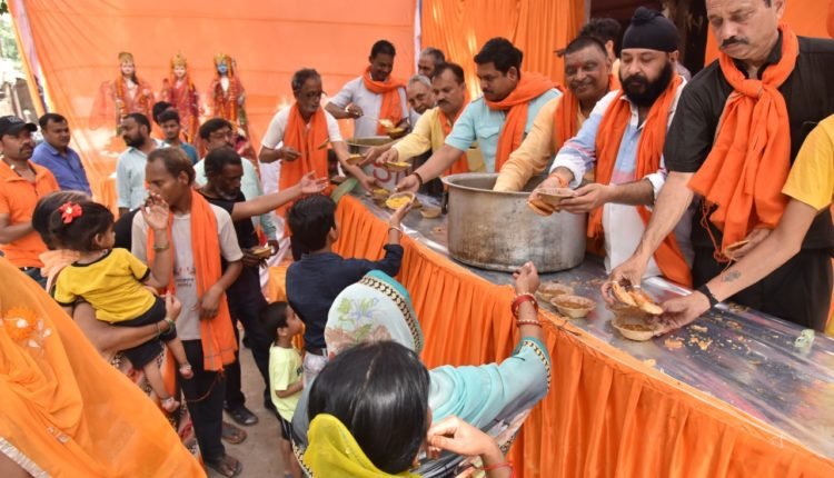 लखनऊ : चैत मास में नवरात्रि पर्व के दिन रामनवमी के शुभ अवसर पर लखनऊ कैंट क्षेत्र के सदर बाजार आजाद माहौल सब्जी मंडी शिव मंदिर के पास भव्य भंडारे का आयोजन किया गया। कार्यक्रम का आयोजन संजय वैश्य दयाल (पूर्व सभासद) ने किया। प्रसाद वितरण के दौरान वहां से गुजरने वाले हर व्यक्ति को रोक-रोक कर प्रसाद वितरण किया गया।