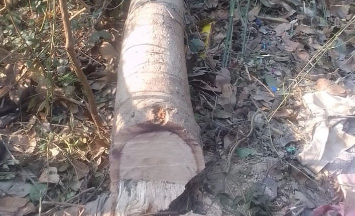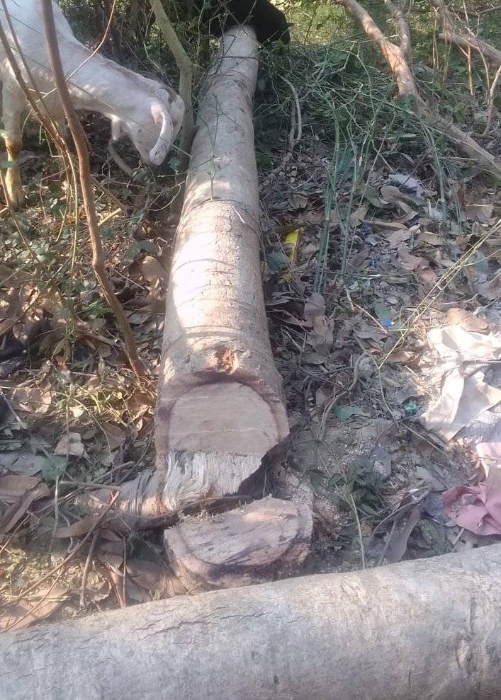 वन कर्मियों की मिलीभगत से काटे गए आधे दर्जन प्रतिबंधित हरे भरे पेड़
