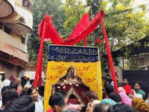 लखनऊ : हजरत इमाम हुसैन (अ.स.) की विलादत के मौके पर रविवार को काजमैन और मुफ्तीगंज में जुलूस निकालकर इमाम की विलादत की खुशियां मनायीं। काजमैन से निकले जुलसू में सबसे आगे ‘जुलूस-ए-मर्सरत” लिखा लाल बैनर था। जिसमें हाथी-ऊंट के पीछे घोड़ों की कतारें चल रही थी। जिस पर बच्चे हाथों में हरे-लाल झंडे लिए बैठे थे