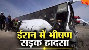 ईरान में भीषण सड़क हादसा, बस पलटने से 22 लोगों की दर्दनाक मौत और 38 घायल।