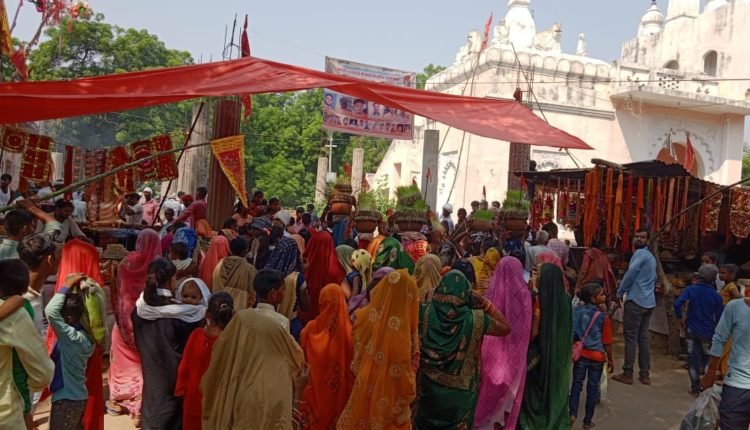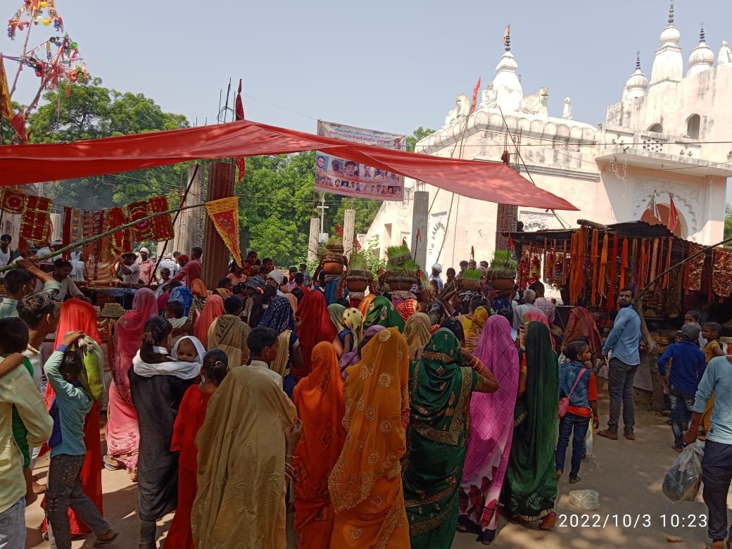 ऐतिहासिक कर्णदेवी मंदिर पर जवारों के साथ जुटी भक्तों की अपार भीड़