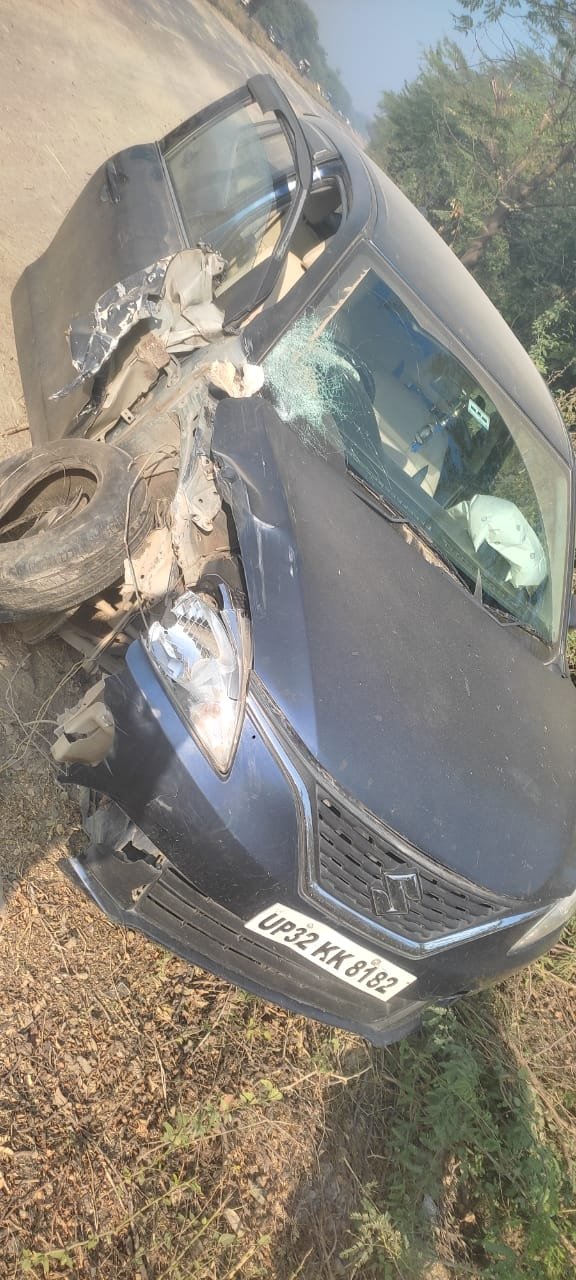लखनऊ हरदोई हाईवे पर कार बाइक की भिड़ंत में पति पत्नी घायल
