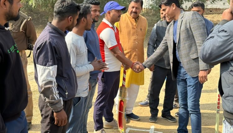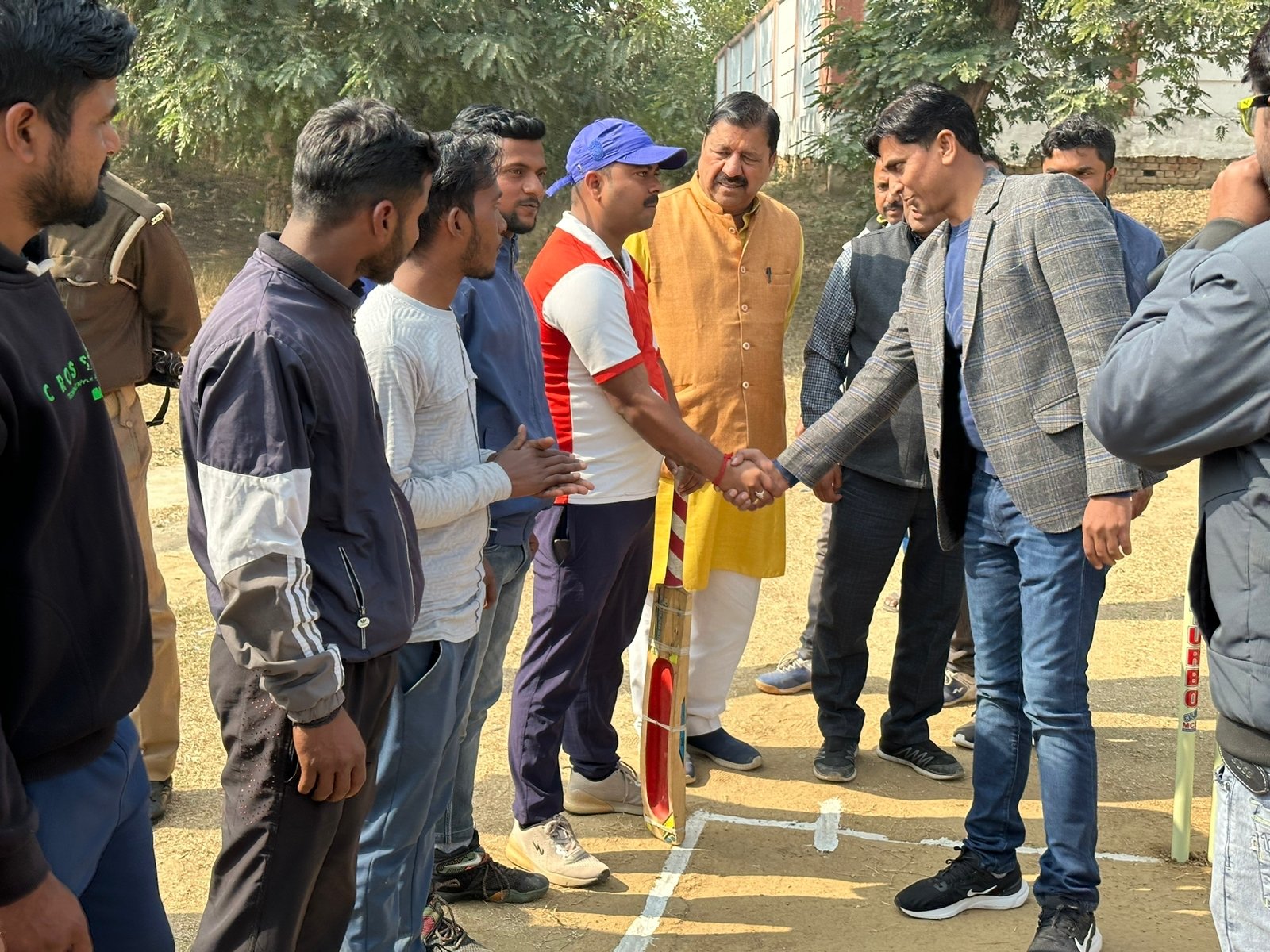 सोनभद्र : ब्लू स्टार क्रिकेट क्लब द्वारा गड़ईडीह रेलवे रनिंग रूम के समीप स्थित खेल मैदान पर आयोजित विंटर कप 2023 क्रिकेट प्रतियोगिता का भव्य आगाज़ गुरुवार को हुआ। लगभग 10 दिवसीय चलने वाले इस टूर्नामेंट मैच की शुरुआत दीप प्रज्वलित कर किया गया। इस दौरान मुख्य अतिथि चैयरमेन प्रतिनिधि उस्मान अली, पूर्व ब्लाक प्रमुख प्रमुख प्रतिनिधि डंपू सिंह, भाजपा जिला कार्यकारिणी सदस्य प्रदीप अग्रवाल, व्यापार मंडल अध्यक्ष संजय जैन, समाजसेवी शेर खान, मंडल अध्यक्ष सुनील सिंह, करगरा प्रधान फूलचंद द्वारा भगवान गणेश जी की प्रतिमा पर पुष्प अर्पित किया गया। मुख्य अतिथियों को पटवध व ओबरा के टीम के खिलाड़ियों का परिचय कराने के बाद खेल भावना के सम्मान में राष्ट्रगान गाया गया। फिर मुख्य अतिथियों ने खेल खेलते हुए भव्य टूर्नामेंट की औपचारिक शुरुआत की।