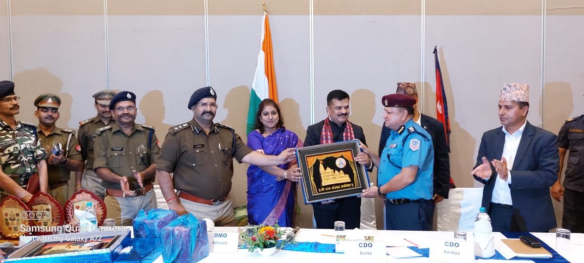 बहराइच। पड़ोसी राष्ट्र नेपाल में आसन्न सामान्य निर्वाचन-2022 को स्वतन्त्र, निष्पक्ष एवं शान्तिपूर्ण ढंग से सम्पन्न कराये जाने के उद्देश्य से नेपालगंज, बॉके स्थित सॉल्टी होटल में भारत-नेपाल समन्वय बैठक सम्पन्न हुई। बैठक में नेपाल साइड से बॉके व बर्दिया तथा इण्डिया साईड से जिलाधिकारी बहराइच डॉ. दिनेश चन्द्र के नेतृत्व में बहराइच व श्रावस्ती जनपद के वरिष्ठ प्रशासनिक, पुलिस, एस.एस.बी., वन सहित अन्य सम्बन्धित विभागों के अधिकारी उपस्थित रहे।