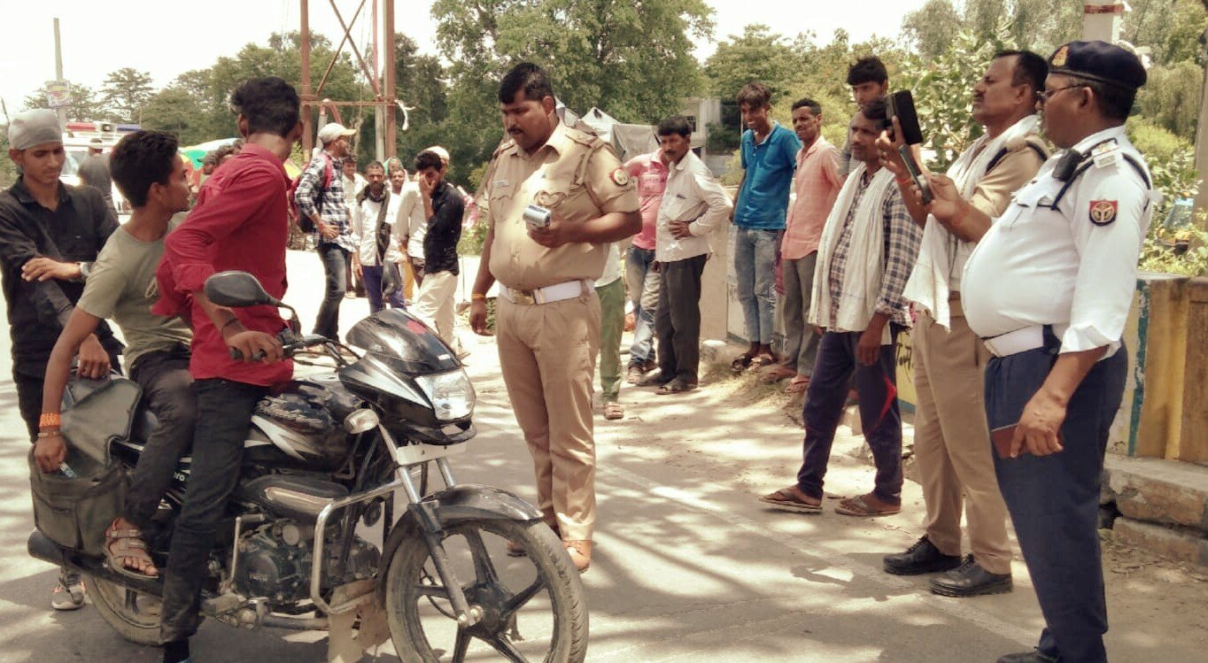बहराइच।जनपद में आज वरिष्ठ पुलिस अधीक्षक बहराइच केशव कुमार चौधरी के निर्देशन में अपर पुलिस अधीक्षक कुंवर ज्ञानंज्जय सिंह के मार्गदर्शन में व क्षेत्राधिकारी यातायात विनय कुमार द्विवेदी के कुशल पर्यवेक्षण में प्रभारी यातायात बहराइच आनेंद्र यादव उपनिरीक्षक यातायात शशीकांत कौल ,आरक्षी दिनेश चौहान आरक्षी विकास यादव व होमगार्ड रविंद्र शुक्ला के द्वारा शहर के विभिन्न चौराहों तिराहों पर सघन वाहन चेकिंग अभियान चलाया गया इस अभियान के अंतर्गत 15 वाहनों से 37500/- रुपए का चालान किया गया व यातायात कार्यालय पर होमगार्ड ,पीआरडी के जवानों को अस्थाई पार्क बनाकर सिग्नल/संकेतों की जानकारी दी गई व अवैध टैक्सी/बस स्टैंड बना कर वाहनों का संचालन न करने हेतु अपील किया गया व आम जनमानस को यातायात नियमों के प्रति जागरूक किया गया तथा ई-रिक्शा चालकों को सूर्यास्त होने के बाद हेड लाइट जलाने हेतु जागरुक किया गया l