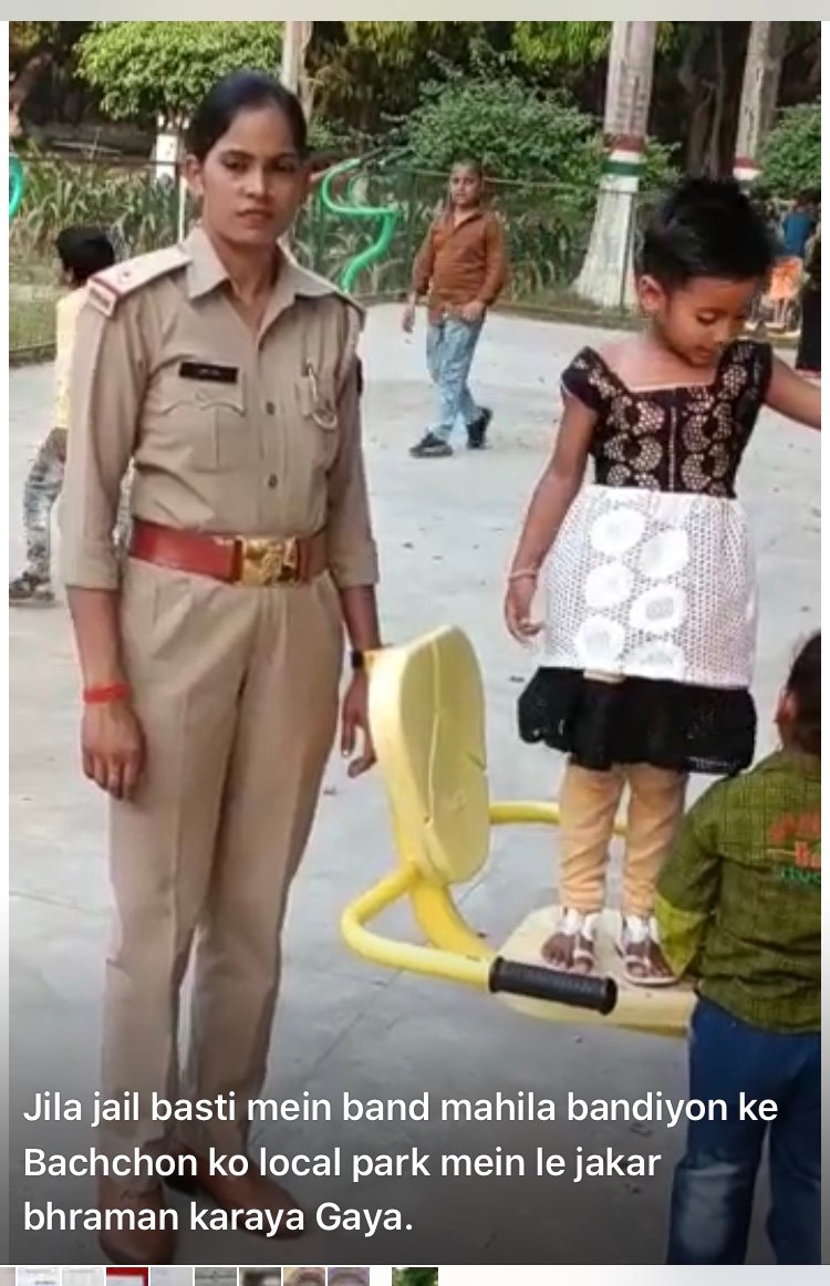 जेल अधीक्षक डीके पाण्डेय के सहयोग से जिला कारागार में महिला बंदियों के साथ रह रहे छह वर्ष से कम उम्र के आठ बेगुनाह मासूम बच्चों ने जेल की ऊंची ऊंची चाहरदीवारी के बाहर की दुनिया पहली बार देखी।इन बच्चों ने पार्क में खुब उछल-कूद की जेल अधीक्षक श्री पाण्डेय ने बताया कि कारागार की महिला व पुरूष वार्डर की बक़ायदा बच्चों के साथ ड्यूटी लगाई गई थी