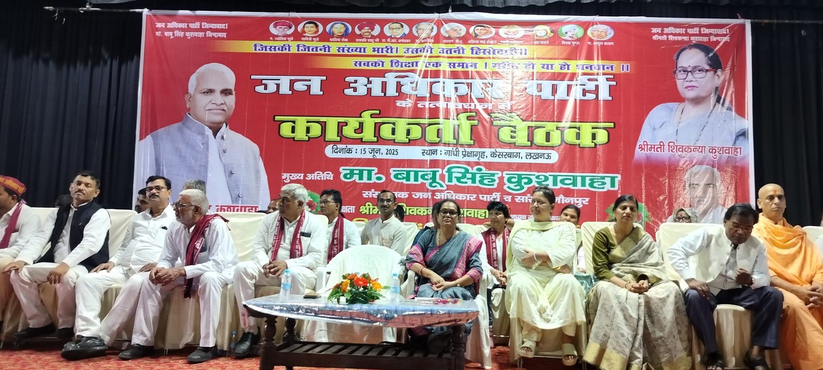 लखनऊ: राजधानी स्थित कैसरबाग के गांधी भवन में रविवार को जन अधिकार पार्टी की प्रदेश स्तरीय कार्यकर्ता बैठक आयोजित हुई। बैठक में आगामी पंचायत एवं जिला पंचायत चुनावों को लेकर रणनीति पर गंभीर मंथन हुआ। पार्टी के संस्थापक और जौनपुर से सांसद बाबू सिंह कुशवाहा ने कार्यकर्ताओं को संबोधित करते हुए कहा कि मौजूदा सरकारें योजनाबद्ध ढंग से दलितों, पिछड़ों और वंचित तबकों को मुख्यधारा से बाहर करने के लिए निजीकरण को बढ़ावा दे रही हैं, क्योंकि निजी क्षेत्रों में आरक्षण का कोई प्रावधान नहीं है।उन्होंने जोर देते हुए कहा कि जन अधिकार पार्टी पंचायत चुनाव में पूरी ताकत के साथ उतरेगी और “जिसकी जितनी संख्या भारी, उसकी उतनी भागीदारी” के सिद्धांत पर सशक्त भागीदारी सुनिश्चित करेगी। पार्टी की राष्ट्रीय अध्यक्ष शिवकन्या कुशवाहा ने कार्यकर्ताओं को बूथ स्तर पर संगठन को मजबूत करने की सलाह दी और कहा कि जब तक गांव-गांव में संगठन की पैठ नहीं बनेगी, तब तक सत्ता में भागीदारी संभव नहीं है।उन्होंने एससी, एसटी, ओबीसी और दबे-कुचले तबकों से संवाद स्थापित करने का आवाह्न करते हुए कहा कि यही वर्ग जन अधिकार पार्टी की ताकत हैं। बैठक में प्रदेश भर से आए कार्यकर्ताओं ने बड़ी संख्या में भागीदारी की और पार्टी के दिशा-निर्देशों पर एकजुटता दिखाई।