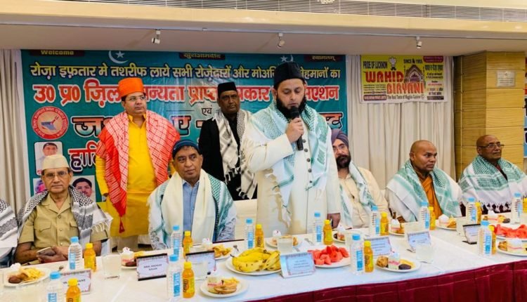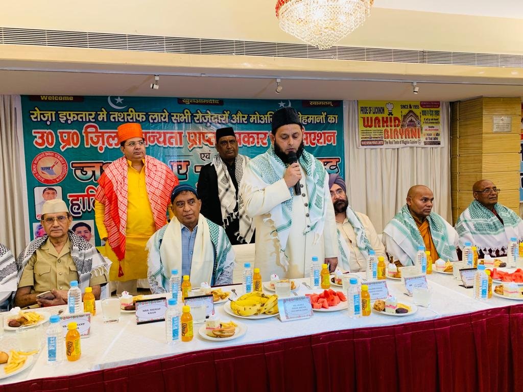 लखनऊ: रमजान के खास अवसर पर सभी धर्म सम्प्रदाय के आपसी सद्भाव व भाईचारे के बन्धन को अटूट बनाये रखने की दुआ के साथ जश्न-ए- आजादी ट्रस्ट एवं उ.प्र. जिला मान्यता प्राप्त पत्रकार एसोसिएशन के संयुक्त तत्वावधान में रोजा इफ्तार का कार्यक्रम होटल रॉयल कैफे में सम्पन्न हुआ।इस ’रोज़ा इफ्तार’ पार्टी में विभिन्न धर्मो के अनुयाइयों एवं धार्मिक गुरुओं के साथ ही समाजसेवियों,पत्रकारों ने शिरकत की