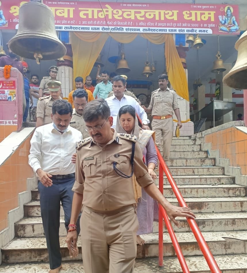 संतकबीरनगर। सोमवार को मंडलायुक्त बस्ती मंडल गोविन्द राजू एनएस व पुलिस उपमहानिरीक्षक बस्ती परिक्षेत्र बस्ती आर.के.भारद्वार द्वारा जनपद में कावंड यात्रा को सकुशल सम्पन्न कराने व सुरक्षा के दृष्टिगत जिलाधिकारी दिव्या मित्तल व पुलिस अधीक्षक सोनम कुमार की उपस्थिति में कावड यात्रा / श्रावण मास में जनपद स्थित शिव मंदिर तामेश्वरनाथ धाम में लगे समस्त पुलिस बल का निरीक्षण किया । तत्पश्चात भगवान शिव को जालभिषेक कर जनपद के शांति एवं समृद्धि की कामना की । एसपी ने समस्त अधिकारियों व कर्मचारियों को पूरे कांवड़ ड्यूटी के दौरान उनका व्यवहार उच्च कोटि रखने और कांवडियों के आने-जाने वाले मार्ग पर विशेष सर्तकता, निगरानी रखते हुए प्रभावी ड्यूटी के सम्बन्ध में आवश्यक दिशा निर्देश दिये । साथ ही कोई भी संदिग्ध व्यक्ति/वाहन दिखने पर तत्काल अपने उच्चाधिकारियों को अवगत कराते हुए कावड कन्ट्रोल रूम को सूचित कर आवश्यक कार्यवाही करने के निर्देश दिए। यदि किसी कांवड़ यात्री के साथ कोई अप्रिय घटना होती है अथवा उनकी तबीयत खराब होती है तो तत्काल इसका संज्ञान लेकर अतिशीघ्र मेडिकल सहायता उपलब्ध करायी जाए। कावंड यात्रियो के साथ शालीनता से व्यवहार किया जाये एवं उनकी हर सम्भव मद्द के लिये तथा यातायात डायवर्जन प्लान को कडाई से लागू कराते हुए ट्रैफिक व्यवस्था दुरुस्त रखने के लिए सम्बन्धित को निर्देश दिए । निरीक्षण के दौरान क्षेत्राधिकारी खलीलाबाद अंशुमान मिश्रा, क्षेत्राधिकारी धनघटा रामप्रकाश, प्रभारी निरीक्षक थाना कोतवाली खलीलाबाद विजय नरायण प्रसाद सहित पुलिस के अन्य अधिकारी उपस्थित रहे ।