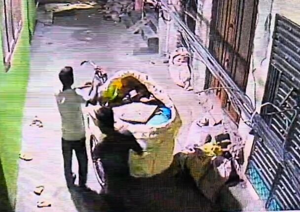 मेनहोल लोहे के ढक्कन को चोरी करते हुए नजर आए दो युवक। वायरल वीडियो बीती रात का बताया जा रहा है।