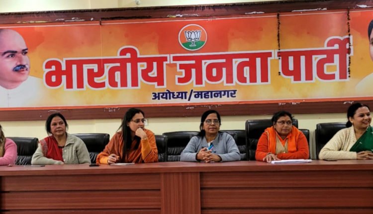 अयोध्या। निकाय चुनाव व लोकसभा चुनाव को लेकर भाजपा महिला मोर्चा की प्रदेश मंत्री डा ममता पाण्डेय को अयोध्या में प्रवास की जिम्मेदारी मिली है। जिसको लेकर भाजपा महिला मोर्चा महानगर व जिले की बैठक पार्टी कार्यालय पर सम्पन्न हुई। बैठक में आगामी चुनावों व नेतृत्व द्वारा दिये गये कार्यक्रमों को लेकर विस्तार से चर्चा हुई।