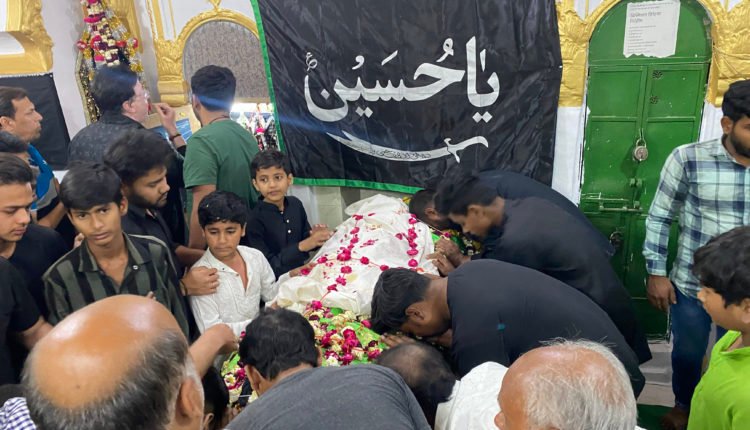 लखनऊ: वजीरगंज के चौधरी गढ़ैया की पाँच मीनारा मस्जिद पर मंगलवार शाम को पहले इमाम हज़रत अली अ.स. की शहादत के सिलसिले में मजलिस-ए-अज़ा मुनक़्क़िद हुई। बादे मजलिस मस्जिद परिसर में शबिहे ताबूत हज़रत अली अ.स. बरामद हुआ।
