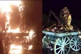 मंदिर से रथयात्रा निकलने के बाद जब इसके मुडऩे की बारी आई तो ऊपर बिछे तारों के जाल की वजह से रथ को आगे नहीं ले जाया जा सका। हालांकि, जैसे ही रथ को पीछे किया गया, उसका संपर्क हाई-टेंशन लाइन से हो गया और और करंट पूरे रथ पर फैल गया। घटना में कुछ बच्चों की भी जान जाने की बात सामने आई है। बताया गया है कि घटना में तीन लोग गंभीर रूप से घायल हुए और उन्हें तंजावुर के ही मेडिकल कॉलेज में भर्ती कराया गया है। हादसे की जो तस्वीरें सामने आई हैं, उनमें रथ को पूरी तरह से जलते देखा जा सकता है।