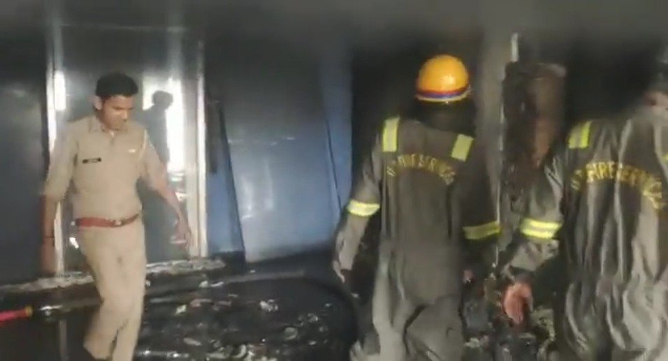 गोयल कॉम्प्लेक्स की तीसरी मंजिल पर लगी भीषण आग।