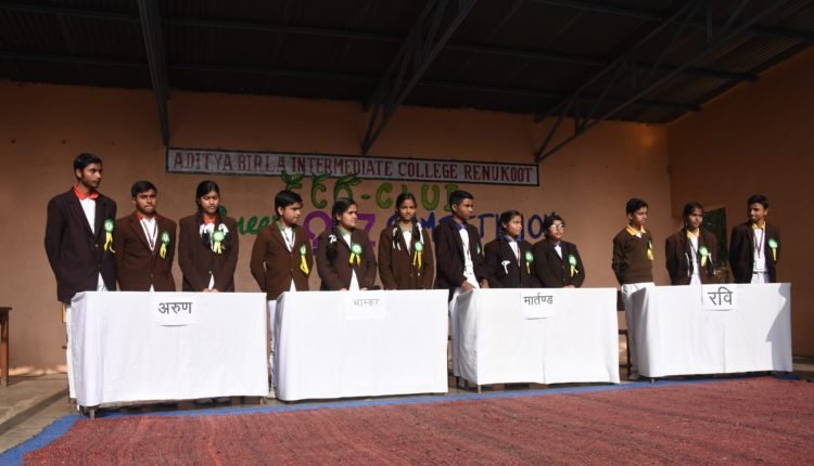 सोनभद्र/रेणुकूट ; आदित्य बिड़ला इण्टरमीडिएट कॉलेज रेणुकूट में इको क्लब द्वारा अर्न्तनिलय ग्रीन क्विज प्रतियोगिता का आयोजन किया गया। कार्यक्रम में विद्यालय के प्रधानाचार्य दयानन्द शुक्ल ने मुख्य अतिथि के रूप में शिरकत की। अपने संबोधन में प्रधानाचार्य ने छात्र/छात्राओं को पर्यावरण संरक्षण का संदेश देते हुए स्वच्छ पर्यावरण के महत्व पर प्रकाश डाला। प्रतियोगिता में अरूण, भास्कर, मार्तण्ड और रवि निलय के छात्र/छात्राओं की टीमों ने प्रतिभाग किया। प्रतियोगिता परिणाम की घोषणा विद्यालय के उप-प्रधानाचार्य विजय भागवत पाटिल ने की। जिसमें प्रथम स्थान पर मार्तण्ड निलय, द्वितीय स्थान पर भास्कर निलय और तृतीय स्थान पर अरूण निलय की छात्र/छात्राएं रहीं। सभी विजेताओं को पुरस्कृत भी किया गया। कार्यक्रम का संचालन कक्षा 12 की छात्राओं नन्दिनी, आरती और विनीता ने किया। प्रतियोगिता में गणक और समय नियंत्रण की भूमिका में विवेक शुक्ला, स्मिता सिंह, हरेन्द्र द्विवेदी एवं मोनिका मिश्रा रहीं। इको क्लब की अध्यक्षा सोमा जोशी के निर्देशन में मीरा जायसवाल, प्रियरंजन सिंह, ब्रजेश शुक्ला, अब्दुल माजिद खान, सत्येन्द्र सिंह, रितेश यादव और जितेन्द्र कुमार सिंह का सहयोग सराहनीय रहा।