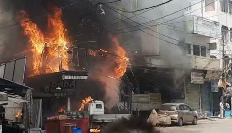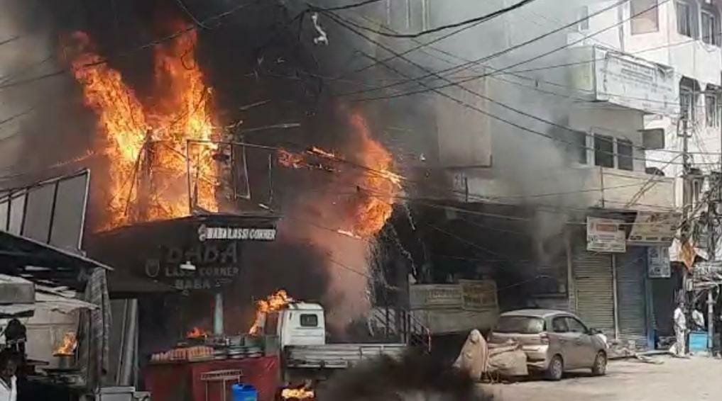 आस पास खड़ी गाड़िया व कार्नर पर बाबा लस्सी की दुकान में भी लगी आग