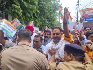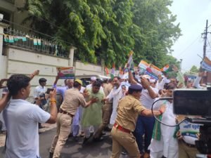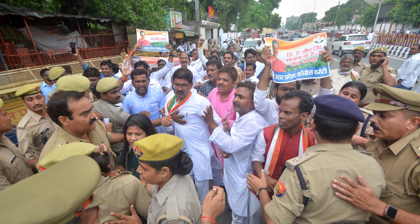 लखनऊ : नरेन्द्र मोदी जी के इशारे पर काम कर रही ईडी द्वारा भारतीय राष्ट्रीय कांग्रेस की अध्यक्ष  सोनिया गांधी जी को पूंछताछ के बहाने आज दूसरे दिन परेशान करने की नीयत से अपने दफ्तर बुलाना सत्ताधीश की विपक्ष के प्रति कुण्ठित सोच दर्शाता है। इससे आक्रोशित देश भर के कांग्रेसजने सड़क पर उतरकर अपना विरोध दर्ज करा रहें हैं। उत्तर प्रदेश कांग्रेस के आक्रोशित नेताओं ने शांतिप्रिय तरीके से देश के प्रधानमंत्री के तानाशाही रवैये के विरूद्ध अपना प्रतिरोध दर्ज कराया। इसी क्रम में लखनऊ में विभिन्न स्थानों पर विरोध प्रदर्शन हुए जहां पर पुलिस ने घोर अलोकतांत्रिक कृत्य करते हुए मारपीट कर बर्बरता का प्रदर्शन किया। पुलिस की कार्यवाही में तमाम कांग्रेसजनों को चोटें आई। पार्टी के कई वरिष्ठ नेताओं को हाउस अरेस्ट कर लिया गया जिसमें उत्तर प्रदेश कांग्रेस विधान मंडल दल की नेता  आराधना मिश्रा मोना मीडिया एवं कम्यूनिकेशन विभाग के चेयरमैन एवं पूर्व मंत्री नसीमुद्दीन सिद्दीकी जी आदि शामिल हैं