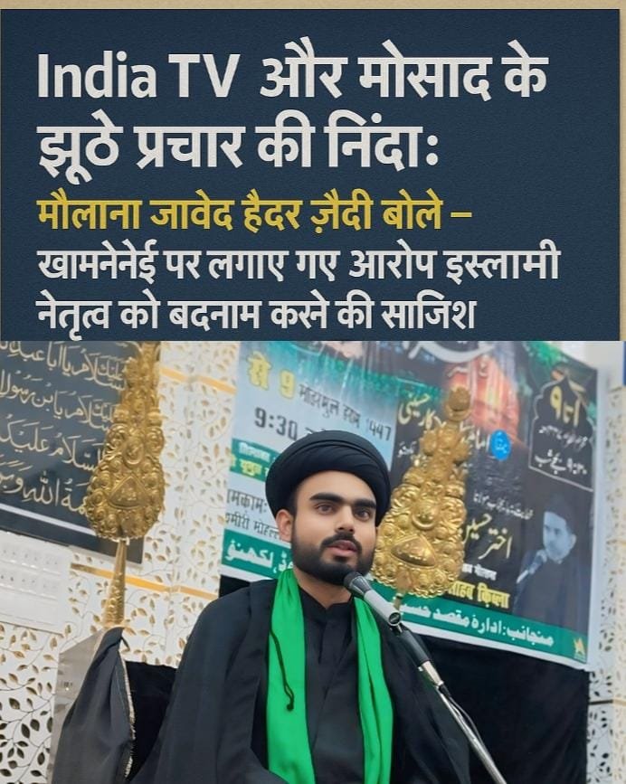 अकाउंट और भारत के एक प्रमुख न्यूज़ चैनल India TV द्वारा प्रसारित आरोपों पर शिया धर्मगुरु मौलाना जावेद हैदर ज़ैदी ने कड़ी प्रतिक्रिया व्यक्त की है।
