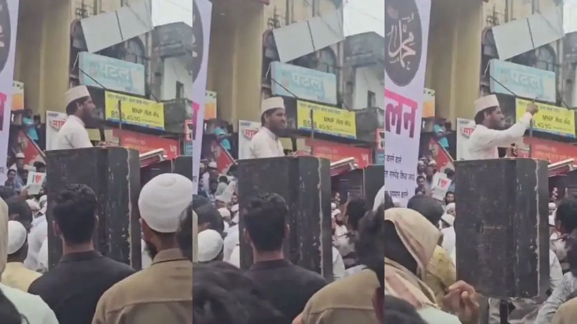 मौलाना ने मंच से भड़काऊ अंदाज़ में कहा, ‘तेरे में हिम्मत है तो माजलगाव में आकर ‘आई लव’ बैनर हटाकर दिखा. मुस्तफा मस्जिद के सामने उस टकले को चैलेंज करता हूंं, यहां तुझे दफना दिया जाएगा.” यह बयान सोशल मीडिया पर वायरल होते ही बवाल खड़ा हो गया पुलिस हरकत में आ गई.