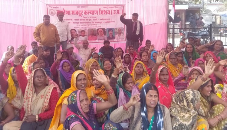 अयोध्या: मनरेगा में पारदर्शिता तथा इससे जुड़े मजदूरों की समस्याओं को लेकर मनरेगा मजदूर कल्याण मिशन की ओर से शुक्रवार को तिकोनिया पार्क में एक दिवसीय धरना दिया गया। धरना के बाद नौ सूत्रीय मांग पत्र जिला प्रशासन के माध्यम से सीएम और पीएम को भेजा है। संगठन की मांग है कि कार्य शुरू करने से पहले मास्टर रोल पंचायत भवन पर चस्पा कराया जाए। जिससे पारदर्शिता बनी रहे। बकाया मजदूरी का अविलंब भुगतान हो 100 दिन कार्य न होने देने पर नियम के तहत बेरोजगारी भत्ता दिया जाए भत्ता प्रति माह 10 हजार किया जाए मृतक श्रमिकों के परिवार को दो साल से फंसा योजना का लाभ तत्काल दिलाया जाए शादी अनुदान का तत्काल भुगतान हो और जमा आवेदन की रसीद दी जाए मुफ्त राशन व मकान का प्रलोभन बंद कर सभी को दवाई पढ़ाई व रोजगार की व्यवस्था दी जाए। साथ ही आपूर्ति विभाग में राशन कार्ड फीडिंग के नाम पर चल रहे भ्रष्टाचार पर रोक लगाया जाए और सोलर ऊर्जा के नाम पर 5-6 साल पहले लिया गया 250 रुपया श्रम विभाग से वापस कराया जाए। जिलाध्यक्ष अशर्फी लाल वर्मा ने बताया कि ज्ञापन पीएम सीएम के अलावा संबंधित विभाग को भेजा गया है। इस दौरान जिला संगठन मंत्री अमरदीप जिलाध्यक्ष गोंडा दीप नारायण सिंह हरिओम मौर्य सरोज गीता प्रेमा देवी पुष्पा सुनीता प्रिंसी समेत अन्य मौजूद रहे।
