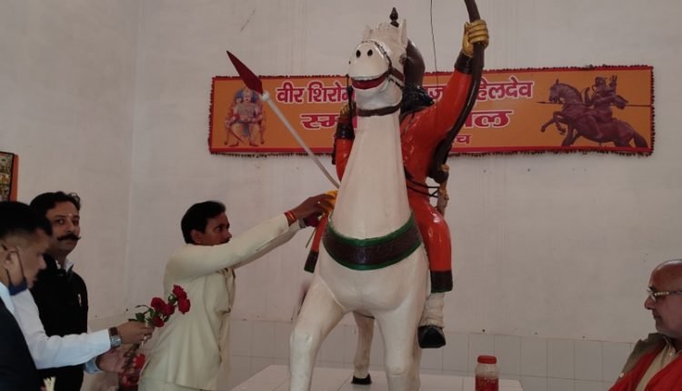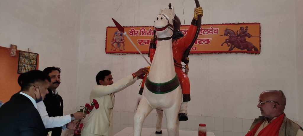 बहराइच : मा. मंत्री पिछड़ा वर्ग कल्याण एवं दिव्यांगजन सशक्तिकरण विभाग/जनपद प्रभारी मंत्री श्री अनिल राजभर ने जनपद भ्रमण के दौरान सांसद बहराइच अक्षयवर लाल गोंड व जिलाधिकारी डॉ. दिनेश चन्द्र के साथ महाराजा सुहेल देव स्मारक स्थल पहुच कर महाराजा सुहेलदेव जी की अश्वरोही प्रतिमा पर माल्यार्पण कर पुष्पांजलि अर्पित किया।