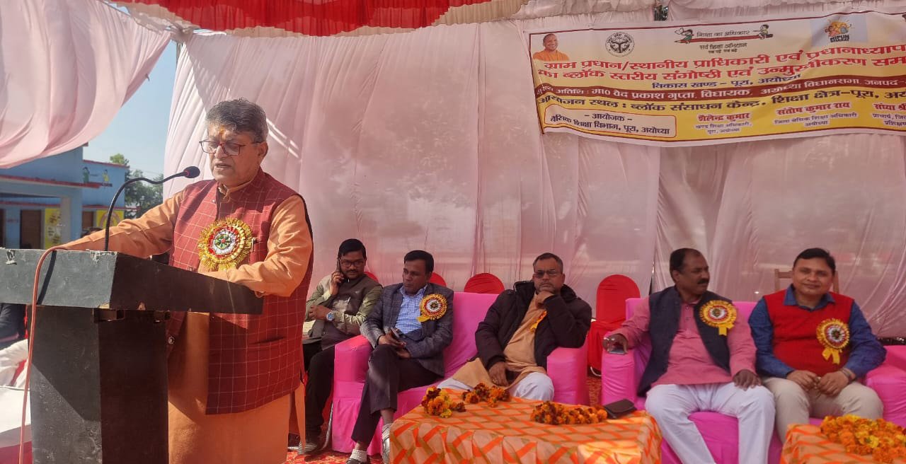 अयोध्या। शिक्षा के बिना जीवन अधूरा है क्योंकि शिक्षित व्यक्ति ही समाज को नई दिशा दे सकता है बच्चे उच्च शिक्षा प्राप्त कर देश के विकास में सहयोग के साथ-साथ अपने भविष्य का निर्माण कर सकते हैं उक्त उद्गार सर्व शिक्षा अभियान को सफल बनाने के लिए निपुण भारत मिशन विषय पर पूर्व माध्यमिक विद्यालय पूरा बाजार के प्रांगण में आयोजित संगोष्ठी में मुख्य अतिथि विधायक वेद प्रकाश गुप्ता ने व्यक्त किया।