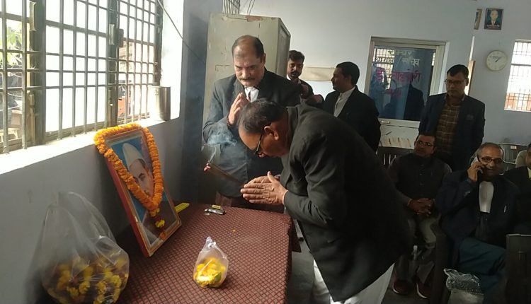 अमेठी : बार एसोसिएशन मुसाफिरखाना के तत्वावधान में देश के प्रथम राष्ट्रपति डॉ. राजेंद्र प्रसाद का जन्मदिन अधिवक्ता दिवस के रूप में मनाया गया। इस मौके पर पांच अधिवक्ताओं को स्मृति चिन्ह,अंग वस्त्र व पुष्प गुच्छ देकर सम्मानित किया। तहसील परिसर स्थित बार सभागार में आयोजित कार्यक्रम की शुरुआत में अधिवक्ताओं डॉ. राजेंद्र प्रसाद के चित्र के समक्ष माल्यार्पण कर उन्हें श्रद्धा सुमन अर्पित किए। कार्यक्रम का संचालन अधिवक्ता संजय मिश्र ने किया।
