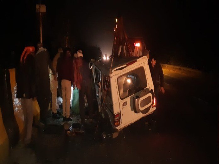 हादसे में इसमें मध्यपुदेश के पुलिसकर्मी भवानी प्रसाद, महिला आरक्षी हीरा देवी, चालक जगदीश, पुलिस मित्र रवि कुमार की मौत हो गई। जबकि कांस्टेबल कमलेंद्र यादव, कांस्टेबल रतिराम, धर्मेंद्र कुमार और प्रीति घायल हो गए। घायलों ने बताया कि मध्य प्रदेश के टीकमगढ़ जिले के थाना भूडेरा से पुलिस की यह टीम हरियाणा के बहादुरगढ़ दबिश देने जा रही थी।