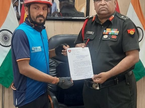 लखनऊ : पर्यावरण व जल संरक्षण जागरूकता के लिए साइकिल यात्रा पर निकले नरपत सिंह का सेना भर्ती मुख्यालय पर भव्य स्वागत किया गया। पर्यावरण एवं जल संरक्षण जागरूकता के लिए ग्राम लंगेरा, जिला बाड़मेर (राजस्थान) के नरपत सिंह ने 34 वर्ष की आयु में विश्व की सबसे लंबी साइकिल यात्रा निकाली है।