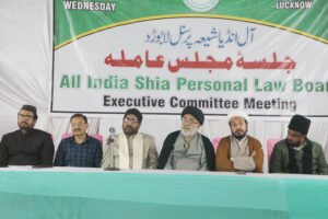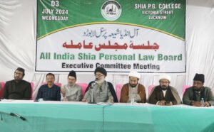 लखनऊ : ऑल इंडिया शिया पर्सनल लॉ बोर्ड की राष्ट्रीय कार्यकारिणी की एक महत्वपूर्ण बैठक को शिया कॉलेज विक्टोरिया स्ट्रीट नक्खास लखनऊ में बोर्ड के अध्यक्ष मौलाना सय्यद साएम मेंहदी की अध्यक्षता में आयोजित हुई जिसमें बोर्ड की कार्यकारिणी के पदाधिकारियों और सदस्यों ने भाग लिया इस बैठक को बोर्ड के अध्यक्ष मौलाना सय्यद साएम मेंहदी नक़वी और बोर्ड के महासचिव मौलाना यासूब अब्बास ने सम्बोधित किया।