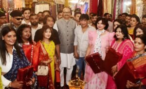 लखनऊ नवरात्रि और दशहरा के शुभ अवसर पर न्यू क्राफ्ट सिल्क इंडिया द्वारा कैसरबाग सफेद बारादरी में आयोजित स्पेशल पार्टी वियर परिधानों की प्रदर्शनी का शुभारंभ उत्तर प्रदेश सरकार के उपमुख्यमंत्री श्री बृजेश पाठक ने फीता काटकर और दीप प्रज्वलित कर किया। यह नौ दिवसीय प्रदर्शनी 25 सितंबर से 3 अक्टूबर तक चलेगी।