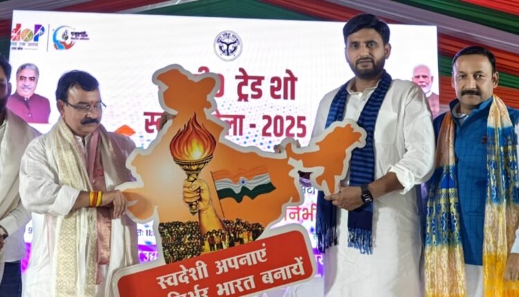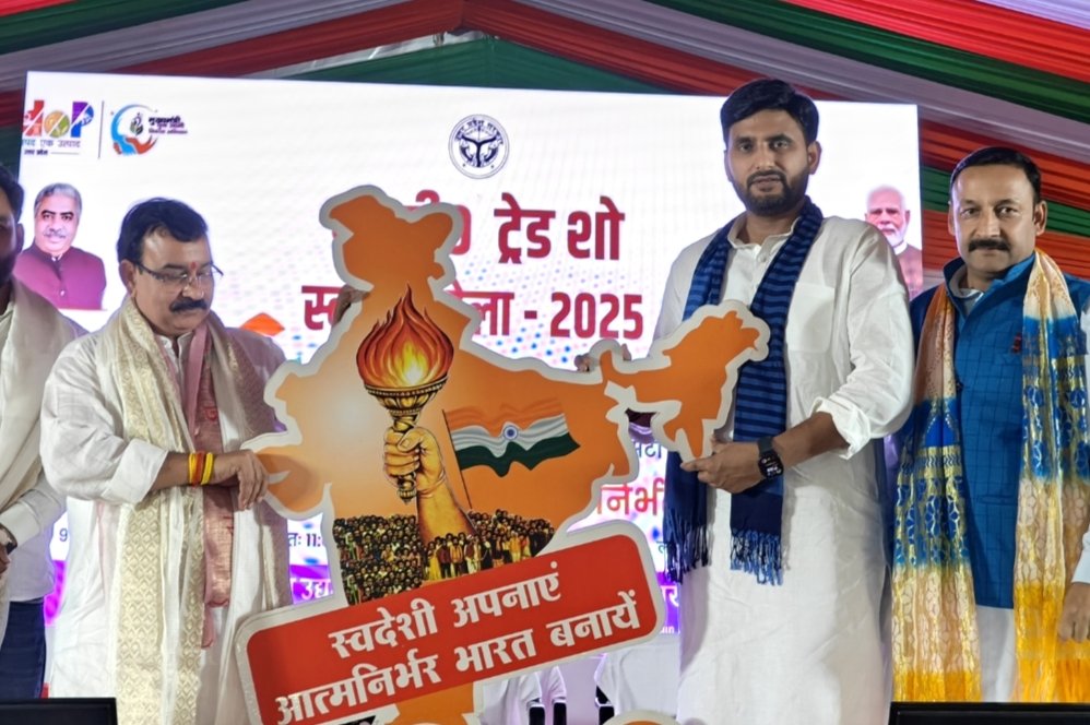 नीरज सिंह और आनंद द्विवेदी ने पार्टी कार्यकर्ताओं के साथ स्वदेशी मेले में खरीदारी की