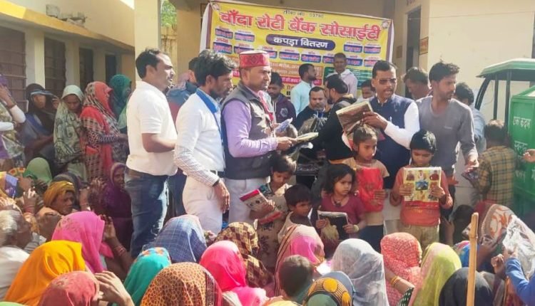 बांदा। सर्दी के मौसम को देखते हुए मंगलवार को रोटी बैंक सोसाइटी की टीम के पदाधिकारियों व सदस्यों ने ग्राम महोखर में ग्रामीणों को गरम कपड़ों का वितरण किया। ग्रामीणों को उनके कानूनी अधिकारियों के लिये भी जागरूक किया। गर्म कपड़े पाकर जरूरतमंदों के चेहरे ऐसे खिल उठे, जैसे किसी ने उन्हें अपनी जागीर सौंप दी हो। रोटी बैंक सोसाइटी की टीम के संरक्षक शेख सादी जमां के संरक्षण और रिजवान अली की अध्यक्षता में जैविक किसान राहुल अवस्थी की अगुवाई में शाखा प्रमुख महोखर वीरेन्द्र कुमार के सहयोग से ग्राम प्रधान महोखर धीरेन्द्र सिंह की उपस्थिति में रोटी बैंक के पदाधिकारियों व सदस्यों ने ग्रामीणों को गरम कपड़ों का वितरण किया। साथ ही ग्रामीणों को उनके कानूनी अधिकारों के लिए भी जागरूक किया। गर्म कपड़े पाकर जरूरतमंद ग्रामीणों के चेहरे पर ऐसी खुशी दिखाई दी, जैसे किसी ने उन्हें अपनी जागीर ही सौंप दी हो। प्रतिकार के बदल ग्रामीणों ने भी रोटी बैंक टीम को आशीर्वाद से नवाजा।