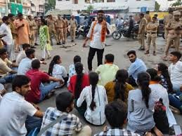 आईटी चौराहे पर भारी संख्या मे NSUI के पहुंचे छात्र, प्रधानमंत्री मोदी मुख्यमंत्री योगी के लगाए मुर्दाबाद के किनारे