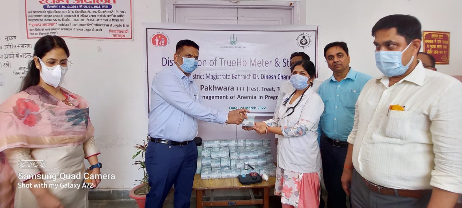 बहराइच : मातृ शिशु पोषण के लिए चलाये जा रहे पोषण प्रेरणा परियोजना के तहत आगा खान फाउंडेशन द्वारा पोषण पखवाड़ा के अंतर्गत ट्रिपल टी0 (टेस्ट, ट्रीट, टॉक एनीमिया) आधारित एनीमिया प्रबंधन एवं रोकथाम के अंतर्गत गर्भवती, धात्री माताओं एवं किशोरी बालिकाओं में एनीमिया की सटीक जांच एवं रोकथाम हेतु 38 डिजिटल हीमोग्लोबिन मीटर, 6450 टेस्ट स्ट्रिप्स स्वास्थ्य विभाग को उपलब्ध कराया गया।