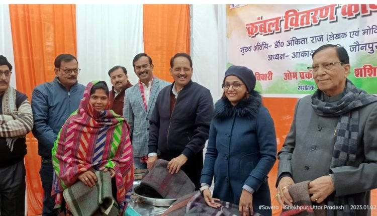 जौनपुर। पत्रकार संघ के अध्यक्ष शशि मोहन क्षेम ने अपना 71 वां जन्मदिन मनाया। इस अवसर पर जौनपुर पत्रकार संघ के तत्वाधान में 300 गरीबों को कंबल वितरण का कार्यक्रम रखा गया। इस कार्यक्रम की मुख्य अतिथि प्रसिद्ध लेखक,कार्टूनिस्ट,आकांक्षा समिति की अध्यक्ष श्रीमती अंकिता राज रहीं।अपने संभाषण में उन्होंने कहा असहायों, निर्बलों की सहायता सबसे बड़ा धर्म है। पत्रकार स्वतंत्र रूप से जीवन निर्वाह करते हुए समाज की सेवा करता है एवं गर्मी, सर्दी और बरसात की परवाह न करते हुए पत्रकार अपने दायित्वों का निर्वहन करता है। अंकिता राज जी ने ठंड से बचने के उपाय एवं बच्चों के लिए कुछ टिप्स दिए खूब अच्छा खाएं,खूब पानी पिए,वर्जिश करें,आराम करें और खूब पढ़ाई करें।उन्होंने नारी शक्तियों को आत्मनिर्भर बनने एवं मजबूत बनने की प्रेरणा दी। श्री क्षेम ने वृक्षारोपण भी किया। अध्यक्षता पूर्व नगर नगर पालिका अध्यक्ष दिनेश टंडन ने किया। संचालन पत्रकार संघ के महामंत्री मधुकर तिवारी ने किया। पत्रकार संघ के कोषाध्यक्ष रामदयाल द्विवेदी प्रोफेसर भारतेंदु मिश्रा, यादव,ऋषि सिंह ,पर्यावरण कार्यकर्ता महेंद्र , शिवा सिंह जी,राजेश मौर्य , डा. मनोज वत्स , अरविंद सिंह बेहोश जौनपुरी , विनोद विश्वकर्मा, रिंकू सिंह,नीरज मौर्य आदि उपस्थित रहे।
